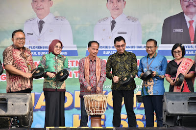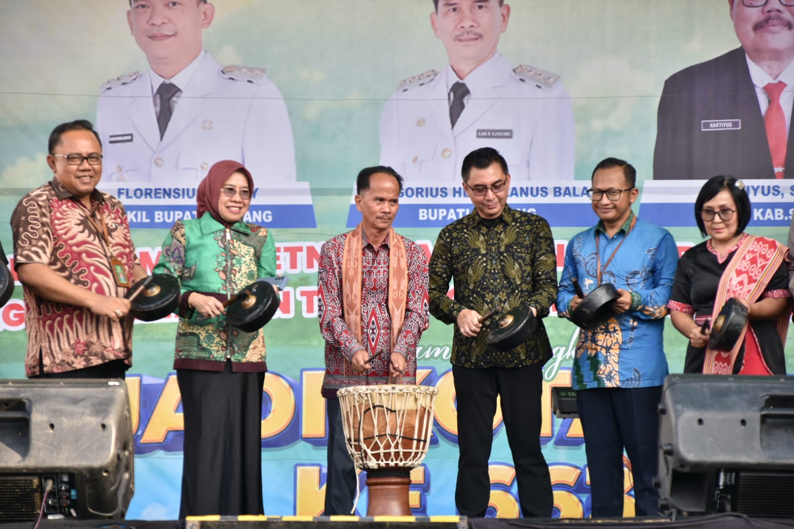 Batubertulisnews.com, Sintang- Bupati Sintang Gregorius Herkulanus Bala memukul gendang sebagai penanda dibukanya Gebyar Musik Etnik, Pameran Ekonomi Kreatif dan Kuliner di Halaman GOR Apang Semangai pada Kamis, 8 Mei 2025 sore.